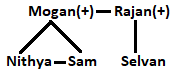 5. Nithya is Sam’s Sister. Mogan is Sam’s Father. Selvan is Rajan’s Son. Rajan is Mogan’s Brother. How is Nithya related to Selvan?