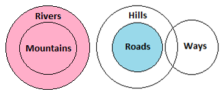 Statements – 5: All mountain are rivers. All rivers are roads. All roads are hills . Some hills are ways