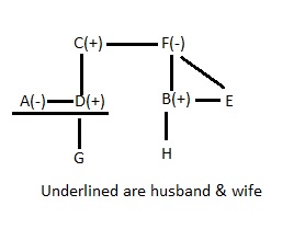 (iii) E’s brother B is the immediate neighbour of C’s son. B is the father of H. No male is adjacent to C.