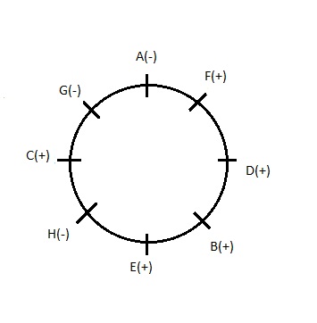 In a family, eight persons A, B, C, D, E, F, G and H are sitting around a circular table facing the centre but not necessarily in the same order. Their arrangement is as follows.