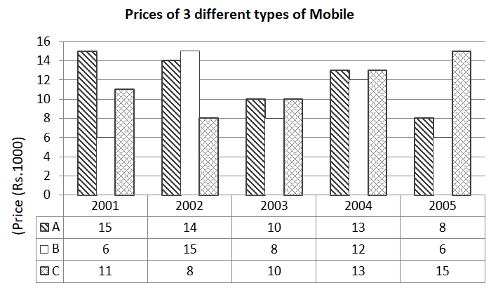 Q5. Find the difference between the price of Mobile A in 2003 and Mobile C in 2004 ?