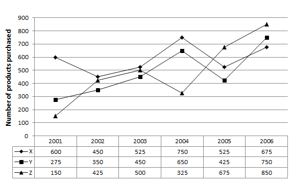 Number of Products purchased by 3 companies X,Y and Z
