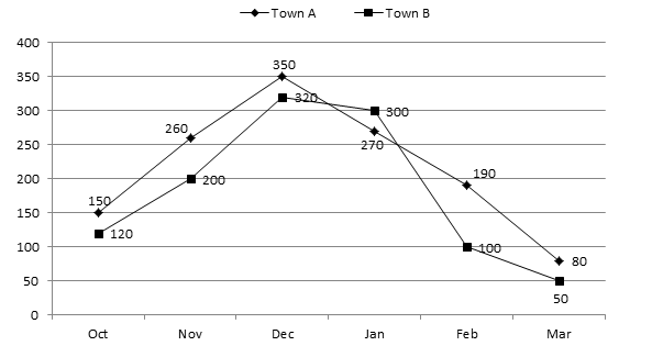 Number of gloves of ‘XYZ’ brand sold in Town A and Town B in 6 different months.