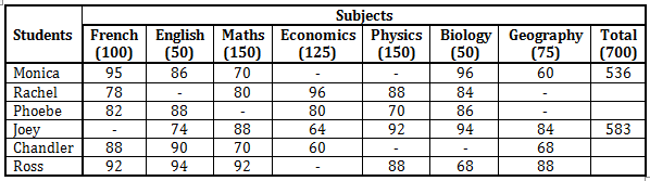 Q5. If total marks obtained by Phoebe in Maths and Geography together is 1 mark less than marks obtained by Ross in Maths and English, then find the total marks percentage of Phoebe.