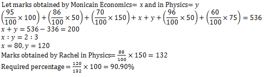 Q1. If the ratio between marks obtained by Monica in Economics and marks obtained in Physics is 2 : 3. Then marks obtained by Monica in Physics is what percent of marks obtained by Rachel in Physics?