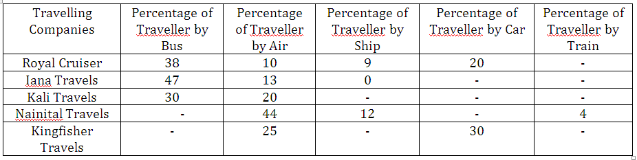 Directions Q1 to Q5- there are five travelling companies. And the following table gives the percentage distribution of all the customer according to their mode of transportation