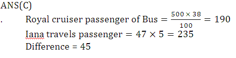 Q2. If the total number of passenger is 500 from the royal cruise and same for Iana travels. Find the difference of people travelling by Bus from these two travel agencies.