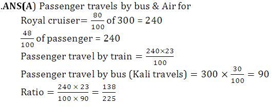 Q1. The total number of passengertravels through kali travels is 300, and the passenger travels by bus and air for royal cruiser is equal to the passenger travel by all the modes other than Air from kali travels. Find the ratio of traveler by Train from Royal cruiser to Bus traveler of kali travels.