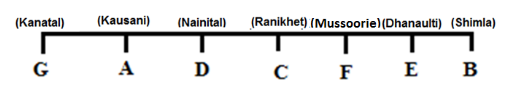 (a) The person, who is going to Kausani is 3rd to the left of F