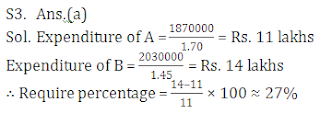 Q3. If in year 2012 the income of A and B was Rs. 18.7 lakhs and Rs. 20.3 lakhs respectively, the expenditure of B was by about what percent more or less than that of A in that year?