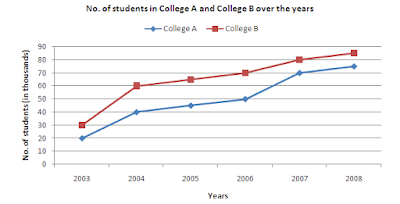 Q6. Total number of students of College B in years 2005, 2006 and 2003 together are what percent more/less then total number of students of College A in years 2003, 2004 and 2008 together?