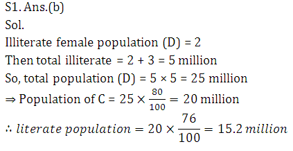 Q1. If illiterate female population of state D is 2 million and total population of C is 20% less than that of D, then find the total literate population of state C?