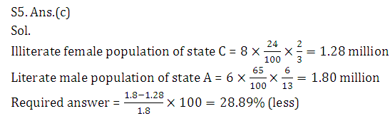 Q5. If population of state A and C is 6 and 8 million respectively, then illiterate female population of C is what percent less/more than literate male population of state A?