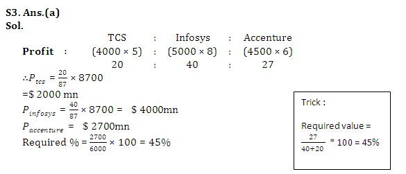 Q3. If TCS, Infosys and Accenture invested in UAE for 5 years, 8 years and 6 years respectively then profit earned by Accenture from UAE is what % of the profit earned by TCS and Infosys together from the same Country, if total profit earned by all of them from UAE state is 8700 mn $.