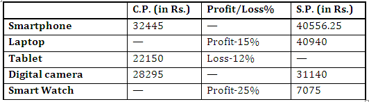 Directions (Q. 6-10): A person purchased 5 Gadgets from a shop and sold them online. Given below is the data showing cost price, selling price and profit/loss percentage.