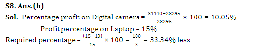 Q8. Profit percentage on Digital camera is what percent more/less than profit percentage on Laptop?