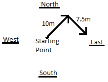 2. If you are facing North-east and move 10 m forward, turn left and move 7.5 m, then you are:
