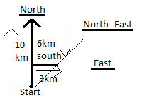 4. Kunal walks 10 km towards North.From there he walks 6 km towards South.Then, he walks 3 km towards East.How far and in which direction is he with reference to his starting point?