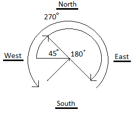1. A man is facing west.He turns 45 degrees in the clockwise direction and then another 180 degrees in the same direction and then 270 degrees in the anti-clockwise direction.Which direction is he facing now?