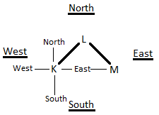 4. K is 40 m South-West of L.M is 40 m South-East of L. Then, M is in which direction of K?
