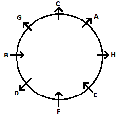 G sits second to the right of D. Both G and C face the same direction as H.(i.e if H faces the centre then G and C also faces the centre and vice-versa.) Only three people sit between B and H. E does not face outside