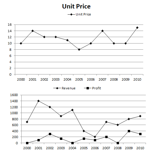 Answer the following questions, based on the following two graphs, assuming that there is no fixed component and all the units produced are sold in the same year.