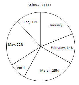 Percentage wise distribution of the number of mobile phones sold by a shopkeeper during six months